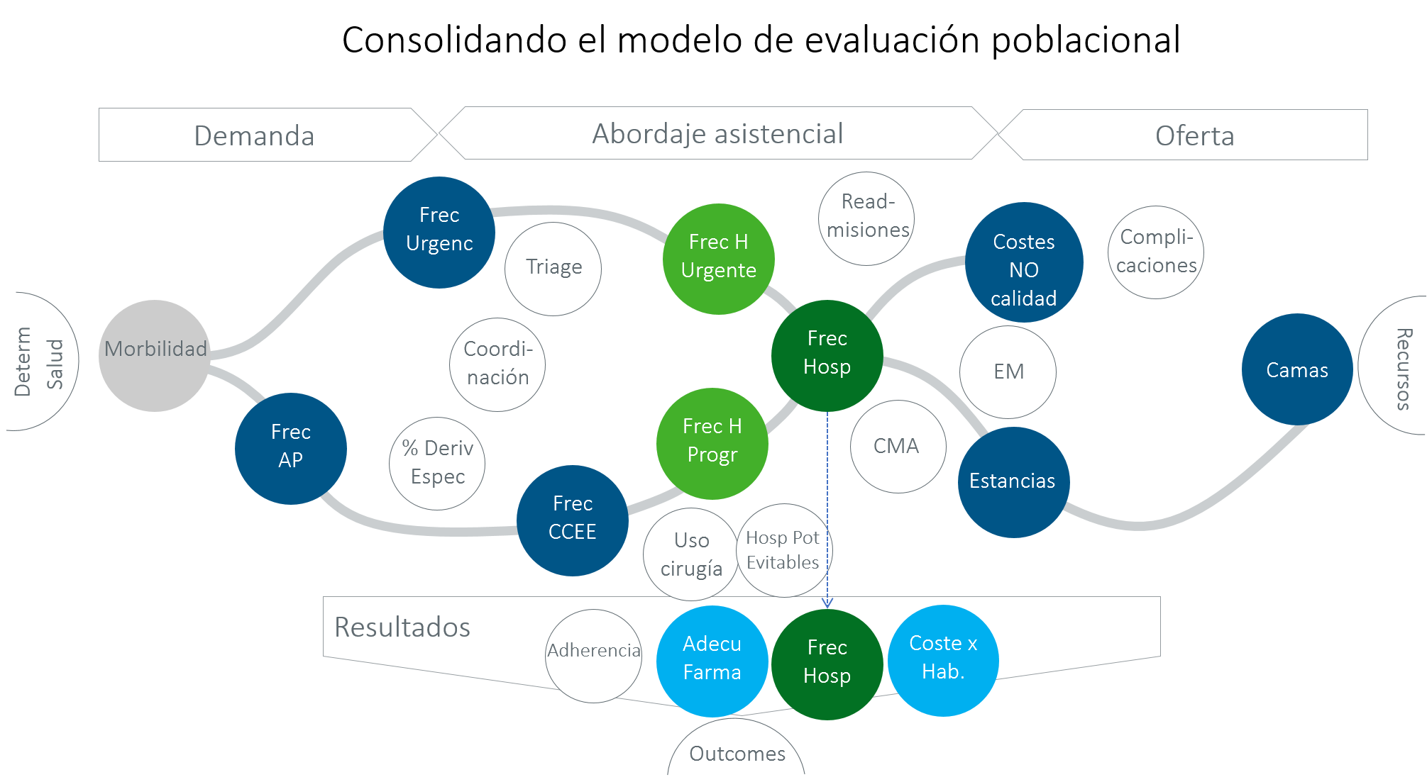 La evaluación poblacional pone el foco en el habitante o el proceso asistencial para vincular toda la actividad y el consumo de recursos del servicio de salud o del área de salud a la que pertenece, con el objetivo de monitorizar al habitante desde una perspectiva más integrada.