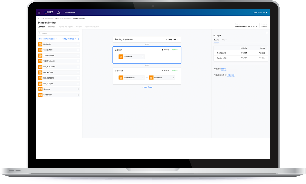 E360®通过直观的用户界面,预定义的查询和指导工具,可以从可行性到完成的研究更快地生成。您不必成为数据科学家……不需要编码!