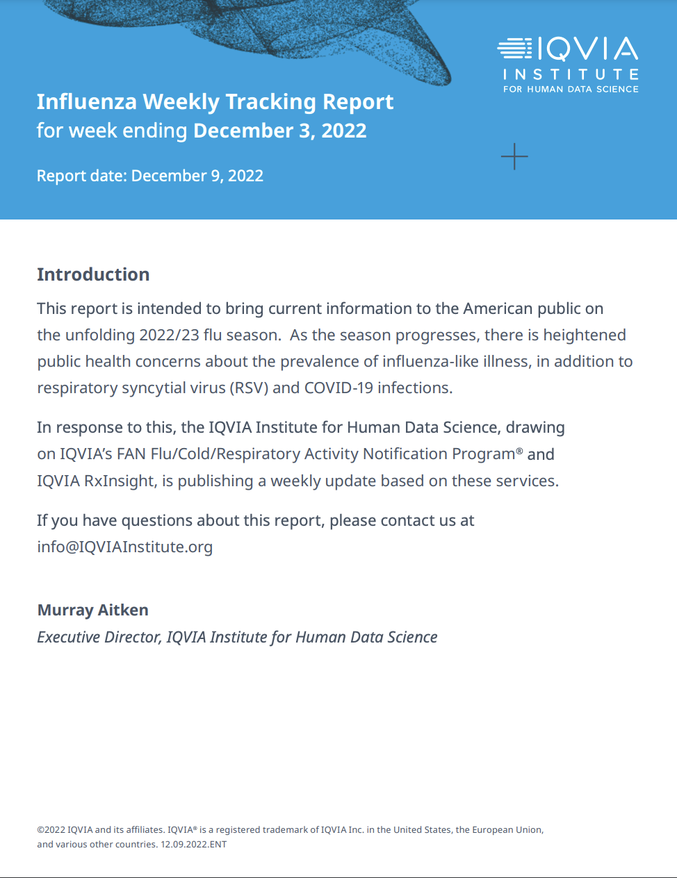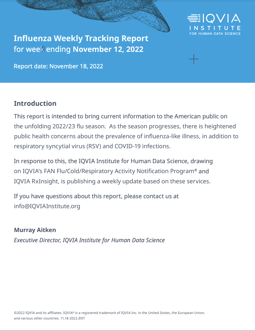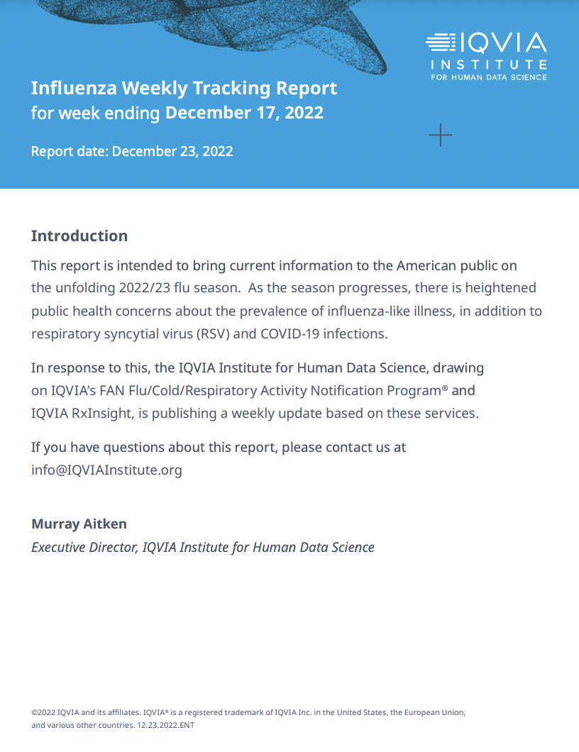 b必威向美国公众提供2022/23流感季节信息的努力中,IQVIA人文数据科学学院发布一系列周更新资料,利用IQVIAFANFLU/Cold/Restira Active通知程序QIARxInsight