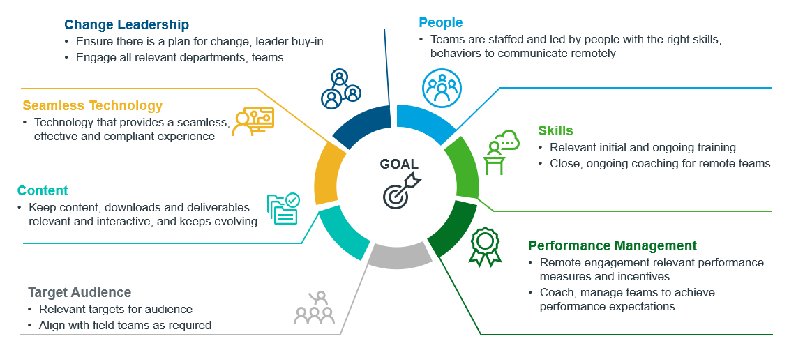 远程订婚需要领导者可以教练和管理这样的工作方式,赞助商理解持续学习的旅程和代表正确的远程能力和行为。提供、建设和发展技能是至关重要的。